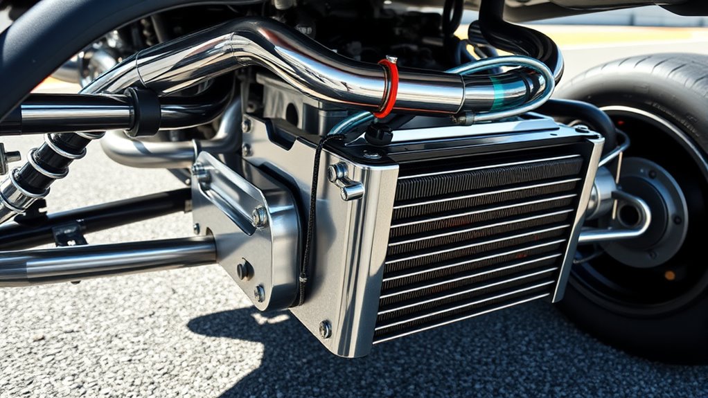 Once installed, the system should be tested thoroughly. Check for leaks, verify proper oil flow, and monitor oil temperature during your track sessions. It’s vital that your cooling system doesn’t create excessive pressure or restrict oil flow, which could lead to worse issues. Over time, regularly inspect and clean your cooler and hoses to maintain efficiency. A DIY stinger differential cooling system not only helps manage oil temperature but also adds a layer of reliability and peace of mind during high-performance driving. By actively controlling heat, you’ll extend the lifespan of your differential and keep it performing at its best, race after race.