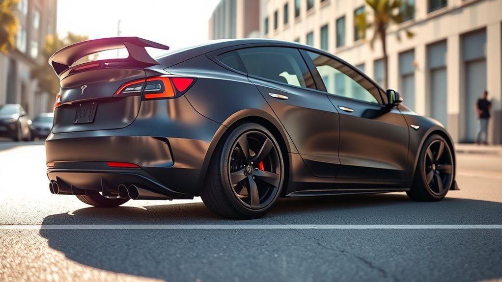 To enhance your Tesla Model 3 for track and street, consider battery upgrades for more range and power, aerodynamic mods like splitters and diffusers to reduce drag, and suspension improvements for better handling. Upgrading brakes ensures safe deceleration at higher speeds, while software tuning can boost responsiveness. Pair these with lightweight wheels and performance tires to maximize grip and efficiency. Keep exploring to discover detailed steps and tips for customizing your Model 3’s performance.