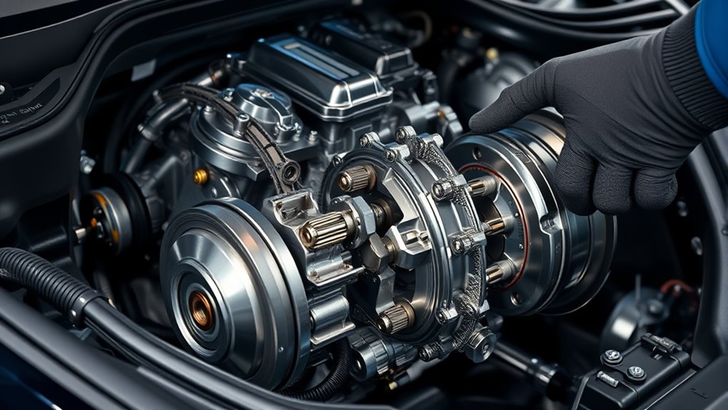 Upgrading a CVT transmission offers limited options. You can improve performance slightly by changing to high-quality or synthetic fluids and considering software tuning for better shift response. Hardware modifications like pulleys or belts are risky, complex, and may void warranties. Keep in mind, CVTs are designed for efficiency, so major upgrades can harm durability. If you explore further, you’ll discover how these limits shape the best ways to enhance your CVT’s longevity and performance.
