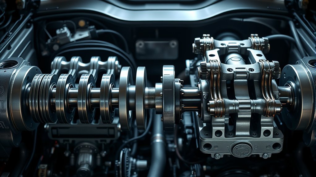 Your choice of crankshaft design impacts fuel economy and power consistency. Flat-plane crankshafts often deliver quicker throttle response, which can improve fuel efficiency during spirited driving. Cross-plane crankshafts provide smoother power delivery, helping you maintain steady fuel consumption. Ultimately, a well-suited crankshaft design balances power output and efficiency, ensuring you get the best fuel economy while maintaining consistent performance, especially during long drives or repeated acceleration.