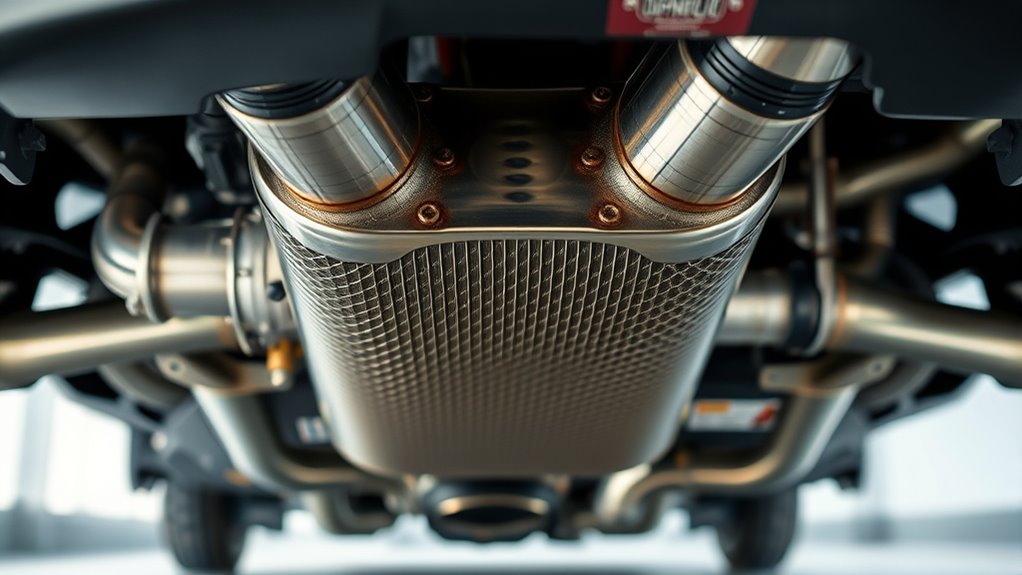 While high-flow catalytic converters can provide notable performance improvements, they also require thoughtful installation and legal compliance. Cutting corners on installation or choosing an uncertified unit can negate the benefits and lead to costly repercussions. By focusing on emission reduction and taking installation considerations seriously, you can enjoy a smoother, more powerful ride without risking legal issues. Remember, the goal isn’t just increased horsepower but also maintaining your vehicle’s environmental responsibility and legal standing. Proper planning, certification for street use, and professional guidance can help you strike this balance effectively, making your upgrade both legal and performance-enhancing.