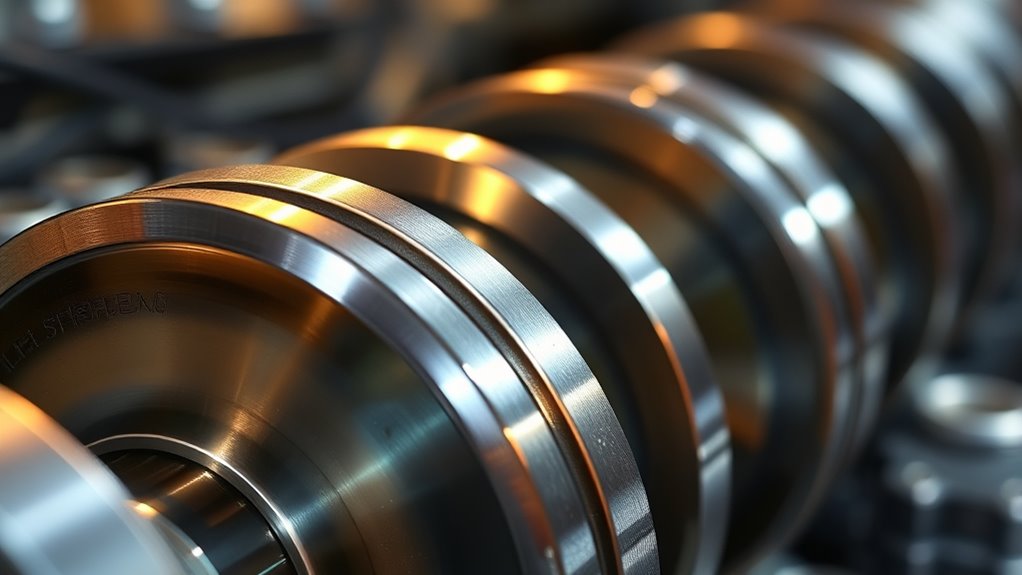 High-performance camshafts control your engine’s valve timing, refining when valves open and close. This precise adjustment allows for more air and fuel intake and exhaust flow, boosting power and responsiveness. By optimizing valve operation, you’ll notice quicker acceleration and better engine efficiency across RPMs. If you want to understand how these camshafts tweak timing for maximum performance, keep exploring—they hold the key to revealing your engine’s fullest potential.