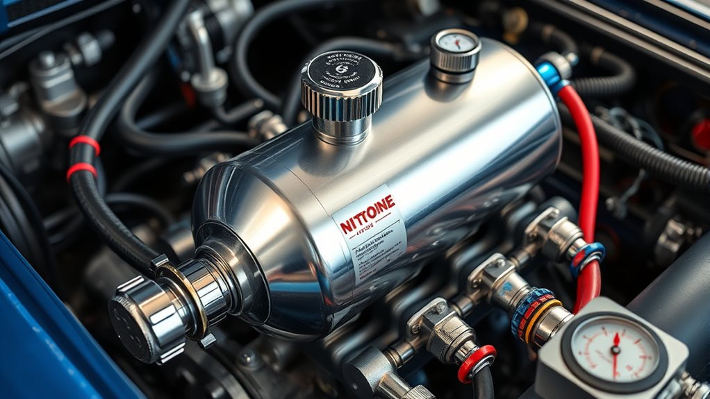 When installing and tuning nitrous oxide systems, safety and performance should be your top priorities. Make sure you mount bottles securely, follow manufacturer instructions, and use proper fuel enrichment to prevent engine damage. Regularly inspect all fittings, hoses, and wiring for leaks or corrosion. Proper setup and careful tuning help you avoid engine knocking, overheating, and safety hazards. If you want detailed tips on maximizing safety while boosting performance, keep exploring this vital topic.