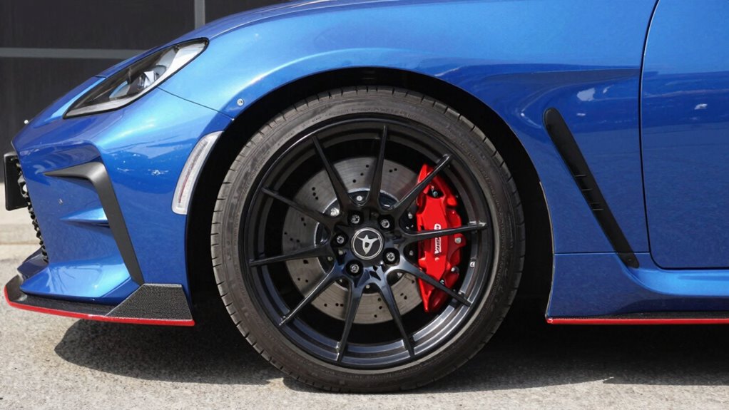 Most aftermarket brake kits are designed to fit specific Toyota GR86 models, so compatibility isn’t universal. I always recommend checking the manufacturer’s specifications before purchasing. For the best fit and performance, choose a kit made for your model year. Sometimes, minor modifications are needed, but generally, these kits are tailored to guarantee proper fitment and safety. Always double-check compatibility to avoid any issues.