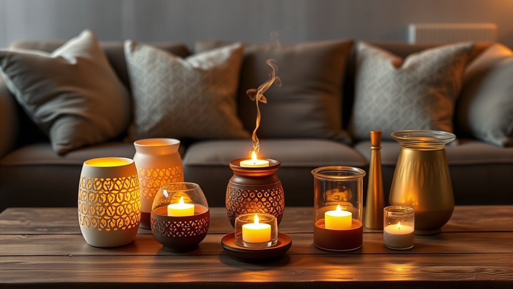 If you’re looking to make your home cozy and fragrant, I recommend checking out the top candle warmer lamps that blend safety, style, and functionality. These options feature dimmable lights, timers, and adjustable heights to suit different candles and decor styles. They’re perfect for enjoying scents without open flames, and many come with elegant designs. Keep exploring to find the best candle warmer lamp that fits your needs and enhances your space.