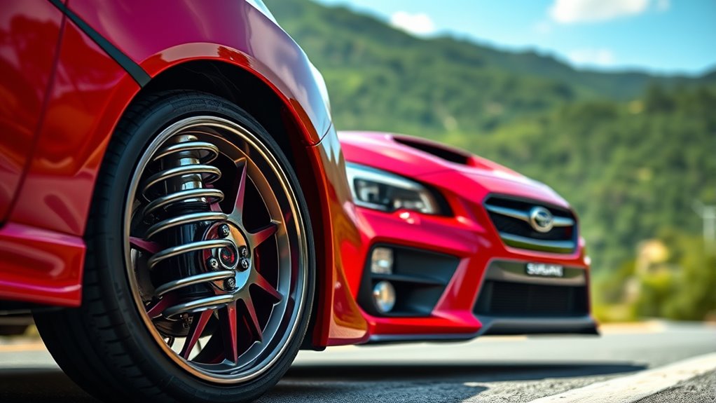 Balancing ride comfort and performance is a key consideration when selecting coilovers for your Subaru WRX. Softer spring rates and adjustable damping settings can make your ride smoother by better absorbing bumps, enhancing daily comfort. On the other hand, stiffer coilovers with higher spring rates boost handling and responsiveness, giving you sharper cornering and improved control—though they may make the ride feel harsher on uneven roads. The ability to fine-tune ride height and damping lets you customize the setup to match your driving style, whether you prioritize comfort or sporty performance. Proper installation and setup are essential; incorrect adjustments can increase road noise and reduce comfort. Additionally, quality materials and construction influence vibration damping, impacting how smooth your ride feels every day.