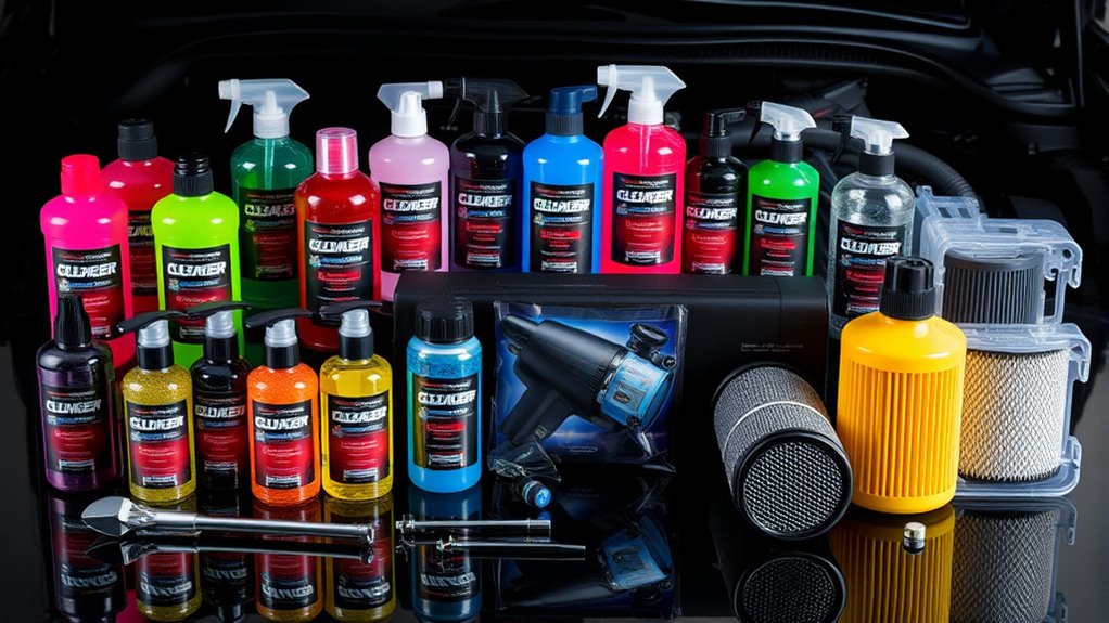 If you’re looking for the 15 best cold air intake filter cleaner kits, I’ve found top options like K&N’s cleaning kits, Cold Air Inductions, and various universal filter kits for trucks and SUVs. These kits boost engine performance, help maintain filter cleanliness, and save money long-term. They include cleaners, oils, and accessories for easy upkeep. Keep going, and you’ll discover how each one can keep your engine running at peak efficiency.