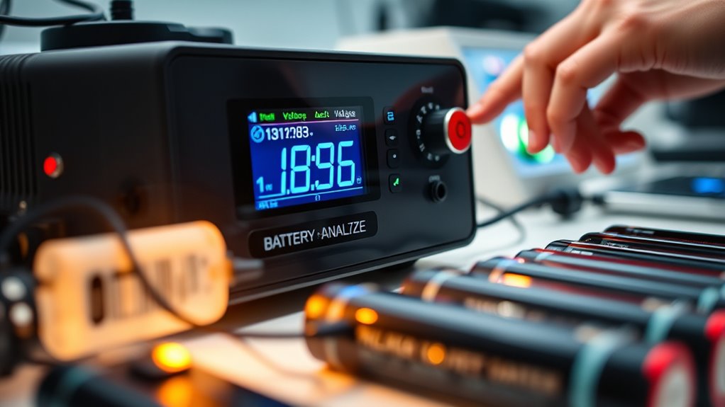 Digital battery analyzers enhance testing accuracy by providing precise, real-time data on a battery’s condition. I find they measure parameters like voltage, current, and internal resistance more accurately than traditional methods, which often rely on visual inspections or basic voltage checks. Their advanced algorithms help identify issues early, preventing unexpected failures. This makes them a reliable choice for ensuring batteries are functioning preferably, saving time and reducing costly mistakes.