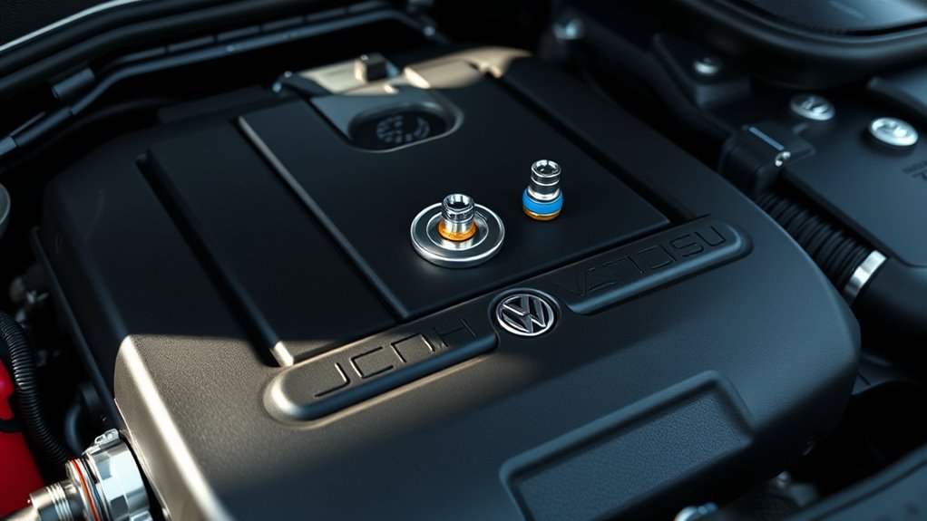 Upgrading your diverter valve can substantially boost your VW MQB’s performance by improving boost response and reducing lag. A performance-oriented diverter valve ensures more precise pressure management within the turbo system, leading to quicker throttle response and smoother acceleration. It helps minimize compressor surge and boost leaks, resulting in more consistent engine power delivery. High-quality diverter valves are designed to withstand higher boost levels, preventing failure under increased performance demands. Additionally, a reliable upgrade maintains ideal boost pressure during rapid throttle changes, enhancing overall drivability. Properly chosen diverter valves can also extend turbocharger lifespan by reducing stress and preventing pressure-related damage. Overall, these upgrades make your car more responsive, efficient, and capable of handling aggressive driving or tuning modifications effectively.