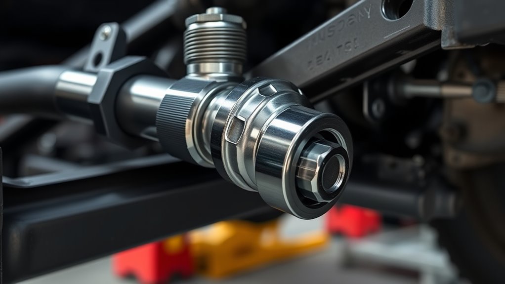 Think of adjustable sway bar end links as the joints in a well-orchestrated dance. I regularly check for signs of wear, like looseness or rust, and tighten or replace as needed. I also lubricate the joints periodically to prevent squeaking and guarantee smooth movement. Keeping an eye on these links helps maintain your vehicle’s stability, much like a steady rhythm keeps dancers in sync. Regular maintenance keeps your ride balanced and responsive.