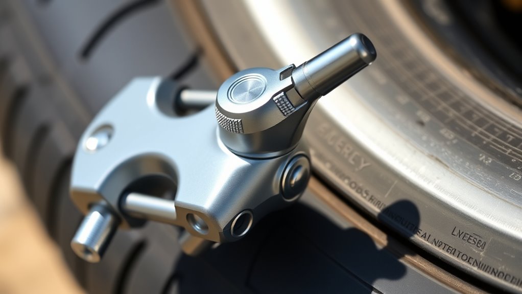 Choosing a tire deflator kit with a quick-release mechanism requires guaranteeing compatibility with your vehicle’s valve stems and tire setup. First, confirm the kit fits your valve type, such as Schrader or TR413, for a secure connection. Check that the connection size and thread pattern match your tire valves, especially if you have aftermarket or specialty valves. It’s also important to verify that the kit supports your wheel size and rim width to prevent fitting issues. Additionally, ensure the quick-release mechanism works seamlessly with your vehicle’s setup, allowing for quick and secure attachment and detachment. Compatibility is essential for accurate pressure adjustment and ease of use, so double-check these factors before making your choice. This ensures your kit functions properly on your specific vehicle.